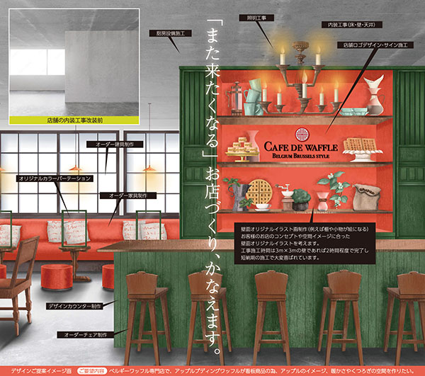 ディスプレイや看板のみならず、店舗の内外装のご提案から、施工まで