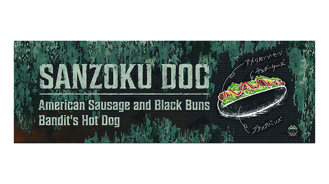 ホットドッグ店「山賊ドッグ」のロゴと横断幕のデザインを担当させていただきました。